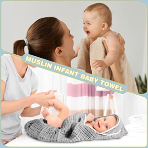 • Soft Absorbent Material: these muslin towels for baby are made of quality cotton material, breathable and absorbent, with a hood design to keep the baby’s body and head warm, machine washable and quick dry, very convenient for easy clean up, keep its softness, thickness and color even after many washes, can serve you for a long time