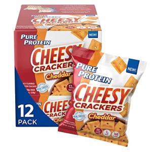 - HIGH PROTEIN, LOW SUGAR(1) SNACK: Pure Protein Cheddar Cheesy Crackers contain 12g of protein and 1g of sugar per serving, making them a perfect high-protein snack.