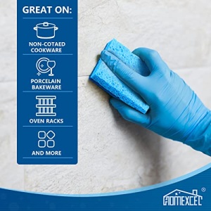 - VERSATILE CLEANING SPONGES:It works well on cleaning bowls, dishes, pots and pans, but also great on oven racks, stoves, garage, kitchen, bathroom and many other places.You will aways find them valuable and useful.