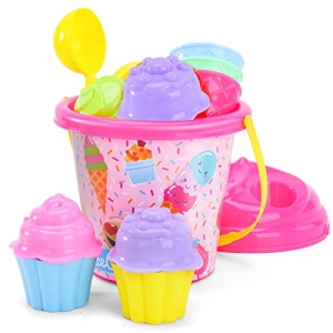 - 🌈15 Pieces Beach Sand Toys – This unique ice cream cupcake beach sand theme toy contains 1 large bucket pail, 1 special cover that will hold the cones, 3 ice cream cones, 3 ice creams, 2 cupcake holders, 2 cakes, 2 scoops, and 2 molds. In addition, we also have a reusable zip waterproof bag, which is convenient to store all parts, carry it as a bag. Get ready and rushed to the seaside for playing!