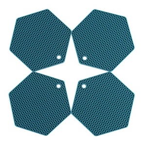 4 Packed Silicone Trivet Mats – DIY Different Size Dish Drying Mat, Hot Pot Holder for Pots & Pans, Non-Slip & Heat Resistant Kitchen Hot Pads for Countertops & Table,Teal