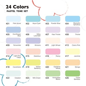 - 🎨 New 24 Fresh Colors Drawing Markers Set — A set of 24 vibrant colors, this 24-color pastel markers set has no repeating color with the previous 40-color set of Arrtx, it is recommended to use them in combination, the large selection of unique colors is just what you need to let your imagination run wild.