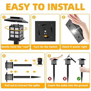 • [Elegant Outdoor Decoration] With attractive, cute, stylish, modern designs, these bright solar garden lights create an elegant outdoor lighting experience. They give a soft, warm illumination and make your landscaping look great at night. They are perfect for your pathway to the entrance of your garden!