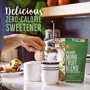 BetterBody Foods Organic Monk Fruit Sweetener Blend, Raw Cane Sugar Substitute, Zero Calorie, Keto Diet Friendly, Zero Net Carbs, Zero Glycemic, Baking, Extract, Sugar Replacement, 1lb, 16oz