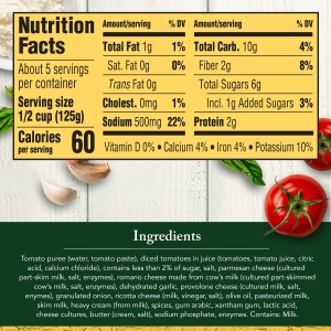 • Made with diced tomatoes and a blend of parmesan, provolone, romano and ricotta cheeses