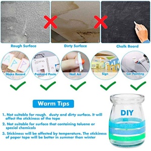 • What Can It Do: You can use this dry erase tape set to make calendar, chart on whiteboard, protect the edge during painting, as a car stuff, mark your violin fingerboard, decorate your stuff and lots of art & craft project for yourself