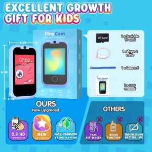 • ♥ Upgraded Phones for Kids: This phone is similar to an MP3 player, supporting music in MP3 format, video in AVI format, and 3.5mm headphone interface. Equipped with 2.8″ display, auto focus, 8.0 Mega pixels and video. And it has a high-quality speaker which is good for children to listen to music.