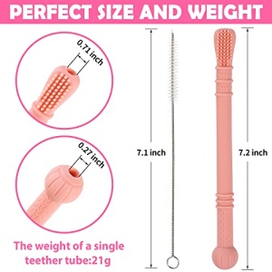 • 【EASY TO USE】We offer teether tubes in 6 different colors for easy replacement and daily use. And our teething tube is designed to be very lightweight, making it easy for your baby to hold and chew.