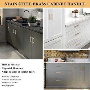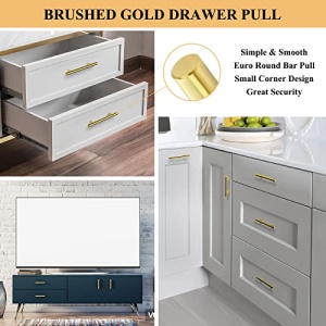 • 💫【Widely Compatible】- Suitable for different styles of cabinets, use these gold hardware to decorate your cabinets or update some old furniture,bring you a modern look. Very stylish and unique. Ideal for kitchen, bathroom, bedroom, cabinet, drawer, dresser, door, cupboard, wardrobe, closet. Smooth and clear stainless steel handles, great helper to pull out drawer soon and conveniently.
