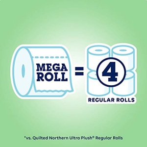- 6 count 2-ply Quilted Northern EcoComfort Mega Roll, equal to 24 regular rolls, 308 sheets/roll
