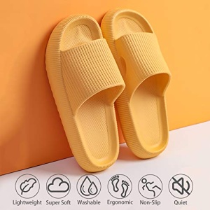 rosyclo Cloud Slippers for Women and Men, Massage Shower Bathroom Non-Slip Quick Drying Open Toe Super Soft Comfy Thick Sole Home House Cloud Cushion Slide Sandals for Indoor Outdoor Size 6 7 Yellow