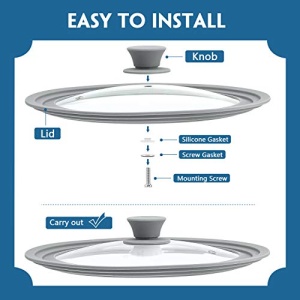 - ◆UNIVERSAL MULTI-FUNCTIONAL POT LID: The high-quality lid is made of silicone outer ring and strong tempered glass, durable, and heat resistant. The lid provides you with a steam vent and a 304 stainless steel rim that is free of BPA. Therefore, it is safer than standard glass and you can use it for a long time. Ideal for kinds of kitchenware, provide you the strongest pot lid on the market.