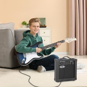 Details: FEATURES: ♬ Features a sturdy top with fine arches, ideal for new, aspiring musicians and expert guitar heroes. ♬ Delivers a smooth tone ideal for rock and roll, playing the blues, and everything else in between! ♬ Comes with a 10W amp for the set, loud for its size and runs on batteries for easy portability. 8ft guitar cable included as well ♬ Right-handed electric guitar with accessories is ideal for beginners and is ready to use out of the box ♬ Shaped for easy control during playing, either sitting or standing up ♬ Comes with a nylon carrying case perfect for traveling musicians and easy storage ♬ Made of an all wood construction, steel strings, and an attractive, smooth finish ♬ The natural, bright sound complements the warm sounds of the solid wood ♬ Kick start your journey to rock stardom? This Full Size Electric Guitar is Just the Ticket! AMP SPECIFICATIONS: 10 watts Two band EQ Volume, base tone and treble control Headphone out Guitar SPECIFICATIONS: Neck: maple wood with truss rod ; String Length: 25.59″ / 650mm ; Pickups: single coil x 3 ; Regulator volume x 1 ; tone x 2 ; 5 x scale tone changer ACCESSORIES: 1 x 39” electric gutiar 1 x 10 watt amplifier 1 x 420D bag 1 x Guitar strap 1 x Guitar cable 1 x Additional strings set +1#additional string 2 x Pick 2 x Allen key 1 x Tremolos rod